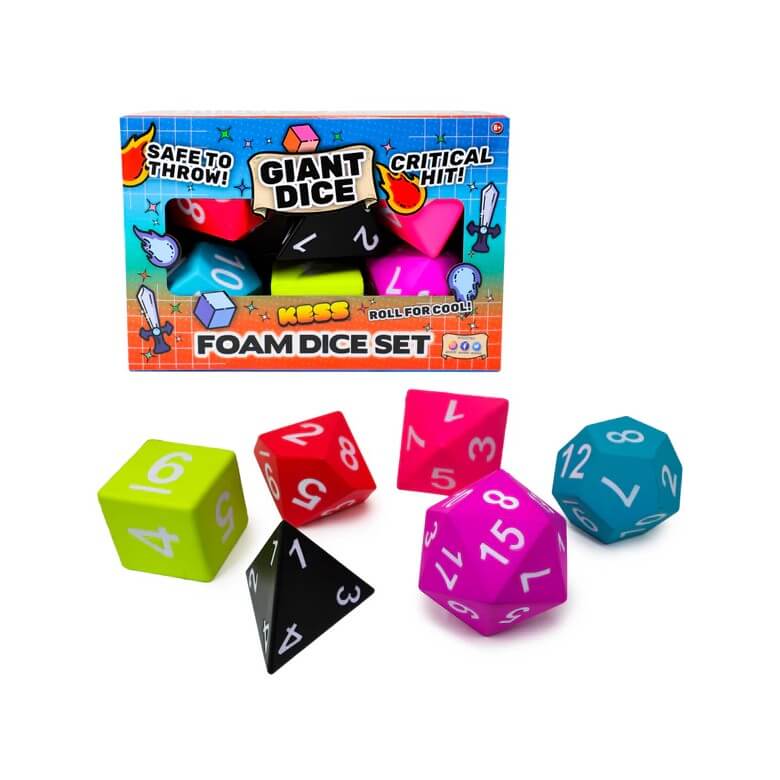 No matter what kind of dice you need for your games, you’ll find the right one inside the Giant Dice Foam Dice Set. Each of the six foam dice included in the set is about 5.5 inches and brightly colored for more fun as you toss and roll. There’s a D20, a D12, a D10, a D8, a D6, and a D4. You can use these soft, oversized dice when playing board games, RPGs, or a game of catch.